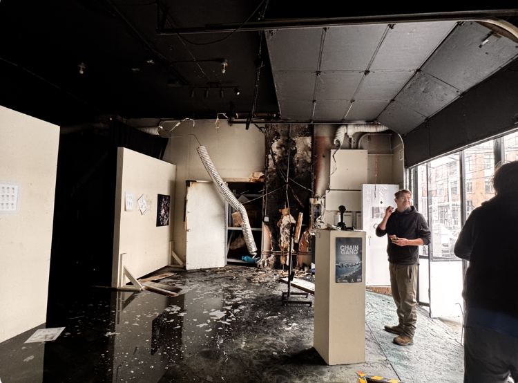 We had an electrical fire in our art space at Passable last night (Monday, March 16th), it caused a lot of damage, and we would love any help getting the space repaired. It’s going to cost thousands even with insurance.